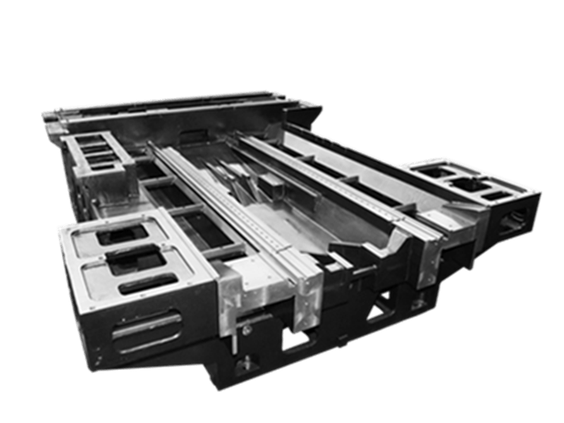 一體式鑄造T型床身,內(nèi)部布置M型加強(qiáng)筋,提供強(qiáng)力切削所需要的高剛性結(jié)構(gòu),三軸導(dǎo)軌采用重載滾柱導(dǎo)軌支撐結(jié)構(gòu),從而使機(jī)床得到高剛性和長久穩(wěn)定的精度。